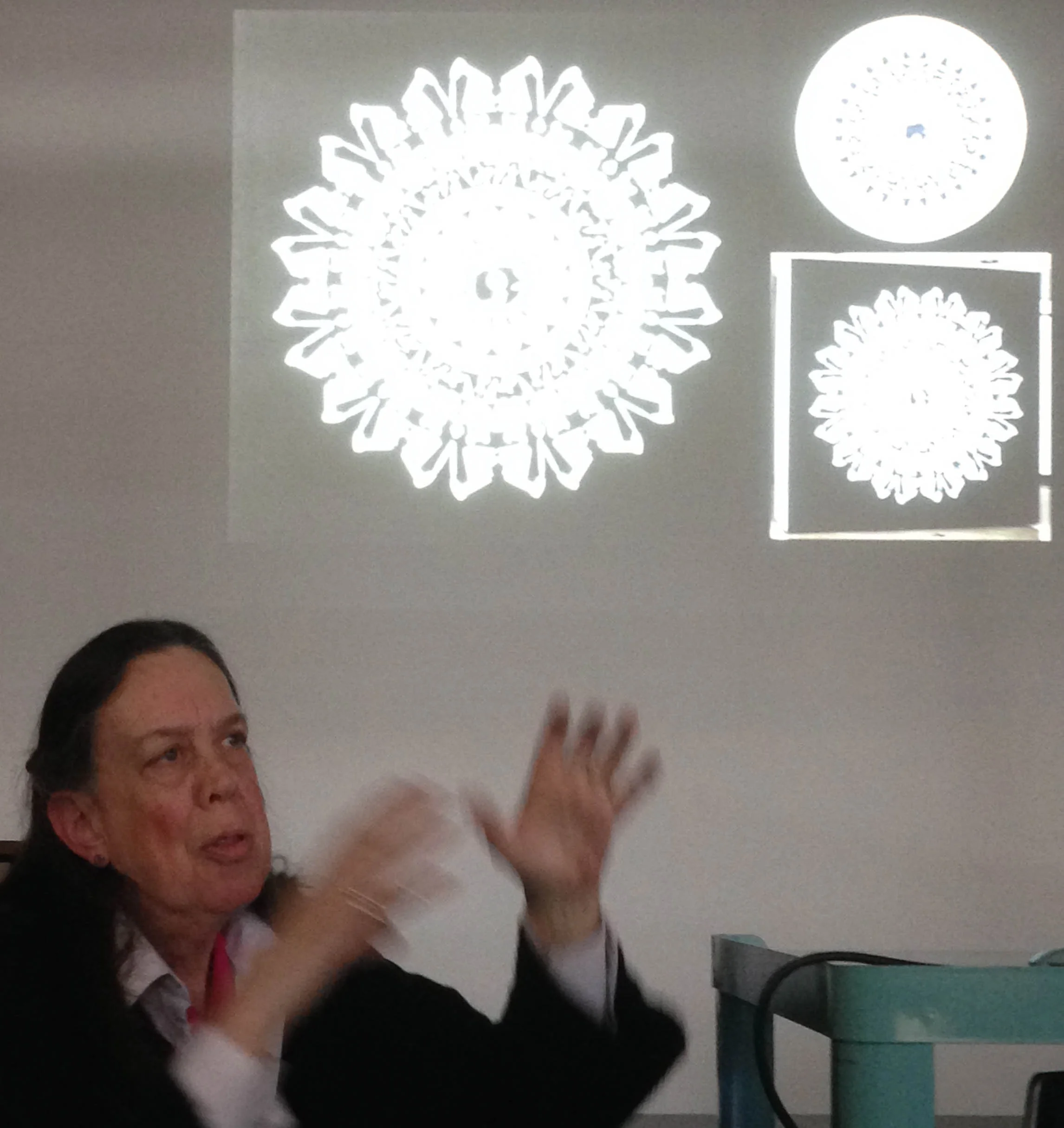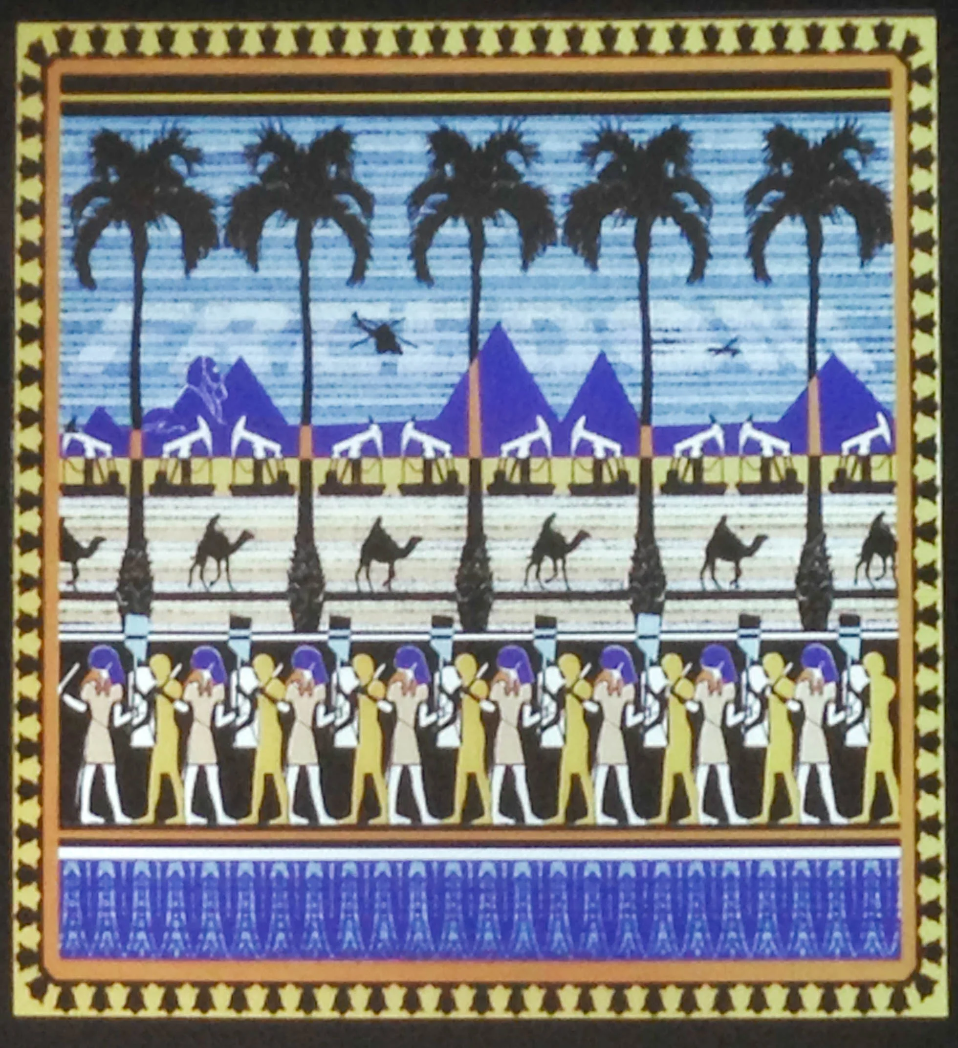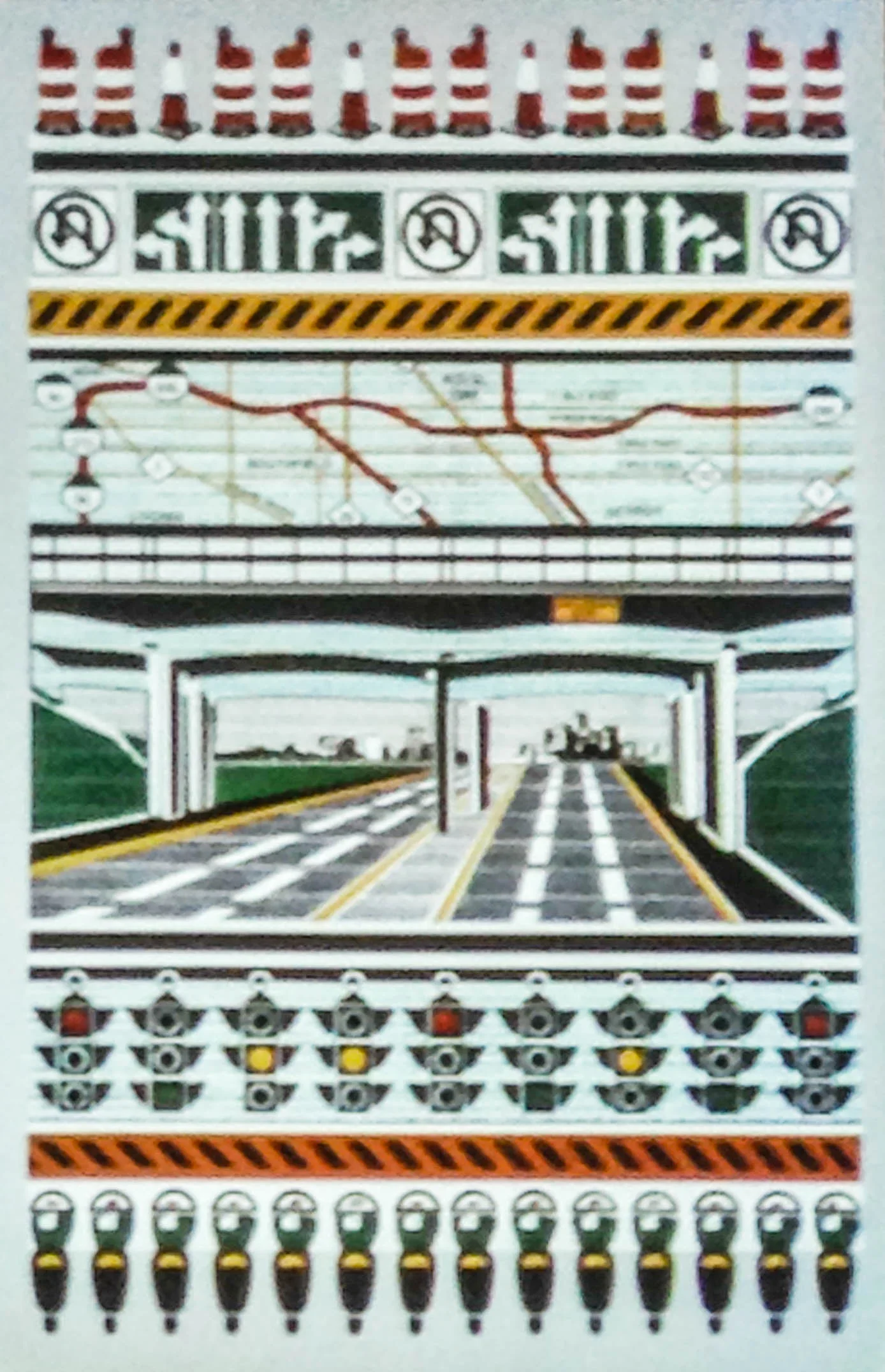Four decades as a visual artist and professor (at Wayne State University) have made Margi Weir fluent in the intricacies of visual language. She writes in high-contrast pictograph, mixing contemporary and ancient symbols to create patterned and highly ordered works. Her carefully chosen symbols are repeated and confined to their respective registers, communing with each other in juxtaposition to create something more than a narrative: an exposition.