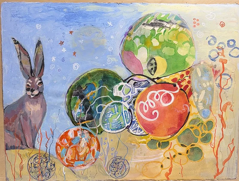 Loretta Markell’s “Cosmic Rabbit” won first place in the Birmingham Society of Women Painters exhibition “Explorations,” on view through September 18, 2025 at the Birmingham Bloomfield Art Center (BBAC), 1516 Cranbrook Rd., Birmingham, MI.